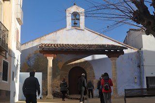 Para bajar la comida hicimos una visita cultural por Chelva. Atravesamos la primera parte del pueblo hasta llegar a la Plaza Mayor. Aprovechamos que la Iglesia Parroquial estaba abierta, por motivo de una boda, para verla por dentro. Ya fuera, contemplamos el reloj-campanario del año 1887, que indica el día del mes en el círculo exterior y el número de este, en el interior. Entre los dos hay unos círculos que nos dicen en qué día de la semana nos encontramos.